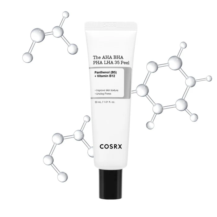 Water, Glycolic Acid, Lactic Acid, Potassium Hydroxide, Gluconolactone, Mandelic Acid, Dipropylene Glycol, Panthenol, Salicylic Acid(2%), Methylpropanediol, 1,2-Hexanediol, Octyldodeceth-16, Citric Acid, Hydroxyethylcellulose, Pentylene Glycol, Sodium Polyacryloyldimethyl Taurate, Cyanocobalamin, Polyacrylate Crosspolymer-6, Hydroxypropyl Starch Phosphate, Ethylhexylglycerin, Capryloyl Salicylic Acid, Polysorbate 60, Disodium Phosphate, Sodium Phosphate, Tocopherol, Allantoin, Hydrolyzed Hyaluronic Acid