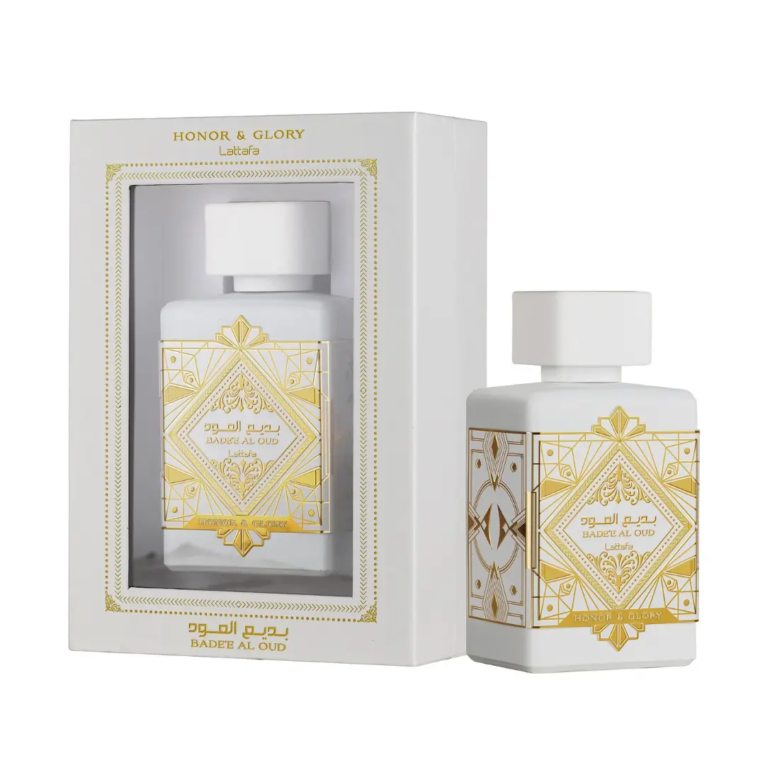 Lattafa Badee Al Oud Honor & Glory is a bold and captivating unisex Eau de Parfum that blends exotic pineapple, warm cinnamon, and rich vanilla with deep oud and amber undertones. Inspired by Parfums de Marly Haltane, this long-lasting scent exudes luxury, power, and elegance. Elevate your fragrance collection with Badee Al Oud Honor & Glory—a true statement of prestige and refinement.