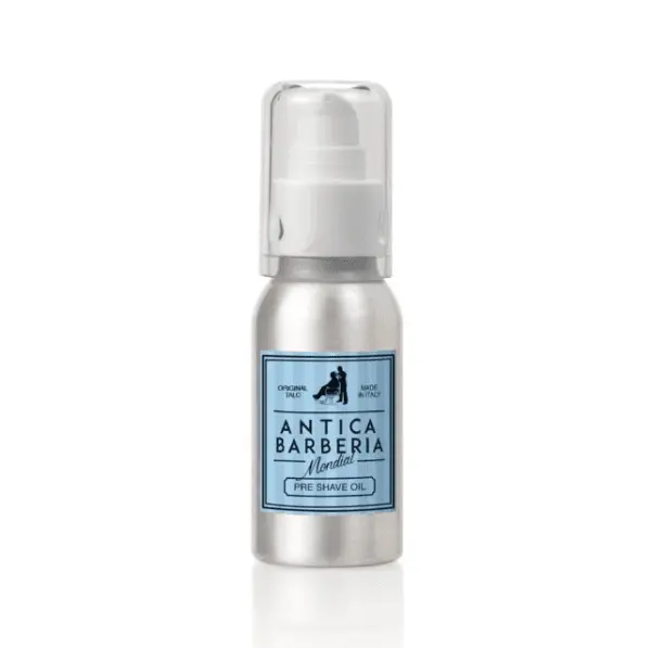 Mondial 1908 Original Talc Lubricating Pre-Shave Oil in a classic Original Talc fragrance features gentle, lightweight Moroccan argan oil known for centuries to hydrate and soften the hair follicles, making it perfect for pre-shave treatment to allow the razor blade to more effectively slice through facial hair with less tugging and pulling than non-treated hair.